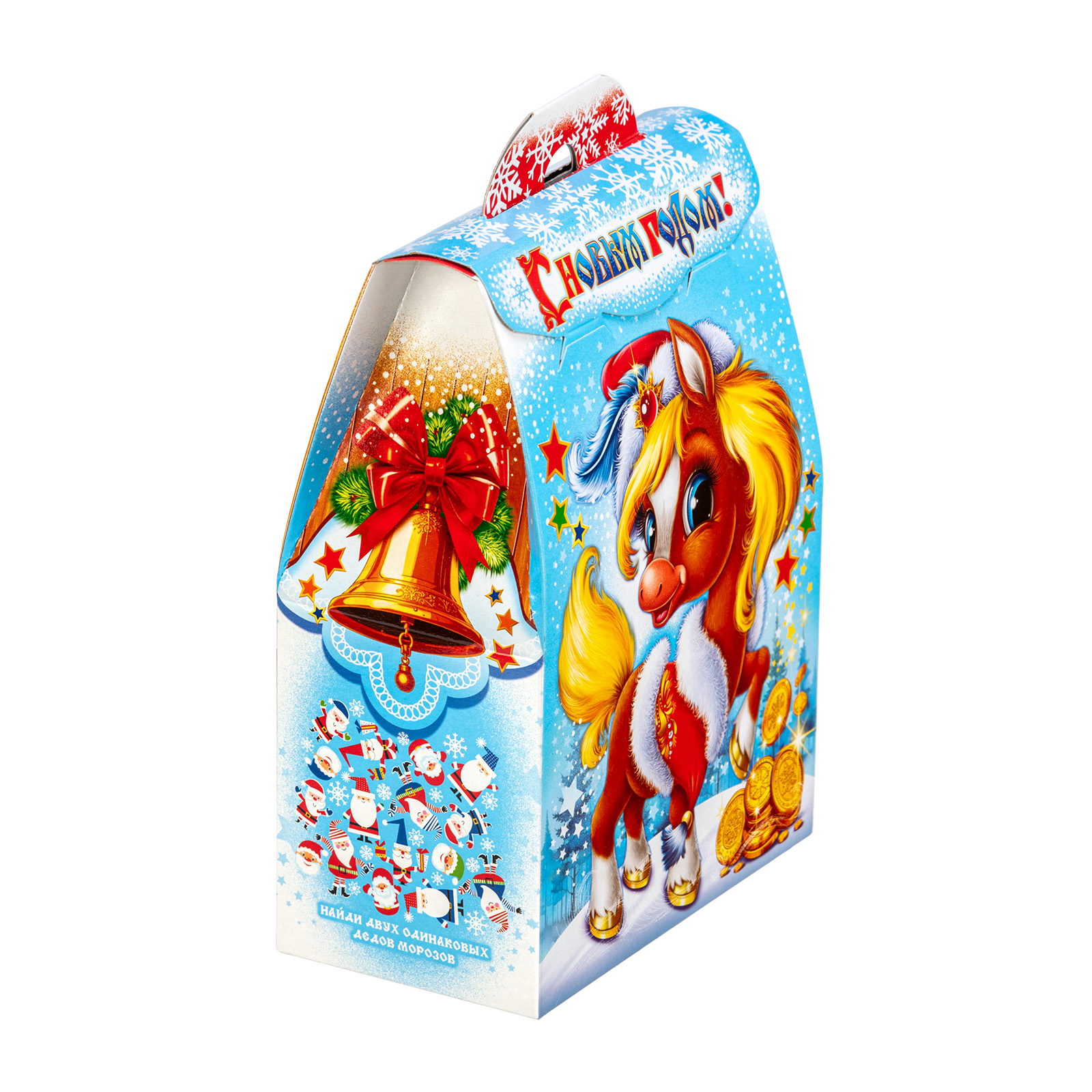 Многие считают, что Новый год - это та самая пора, когда даже самые невероятные желания могут сбываться! Набор “В ожидании чуда” - это как раз про исполнение мечт!  Сладости бережно упакованы в небольшую картонную коробочку нежно-голубого цвета. На ней есть поздравительная надпись, рисунок огненно-рыжей лошадки, а также небольшой праздничный кроссворд сбоку. Разгадав его, ребенок получит доступ к сокровищам!  В состав подарка входит 700 грамм отборных кондитерских изделий от ведущих кондитерских фабрик и небольшой памятный сувенир в виде символа года.